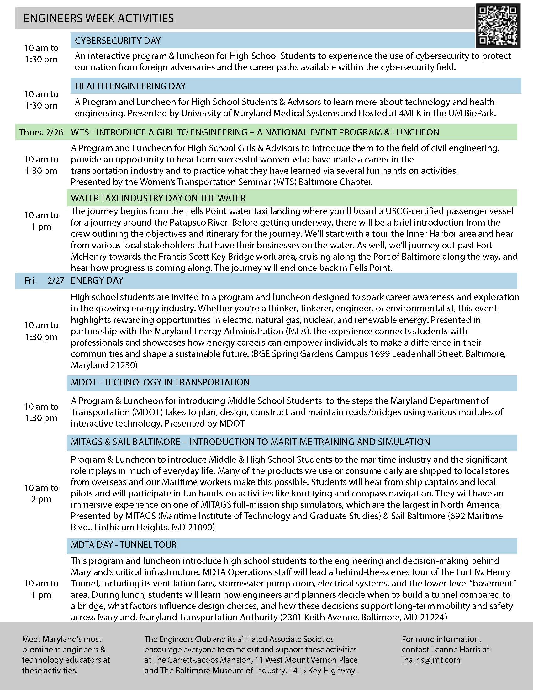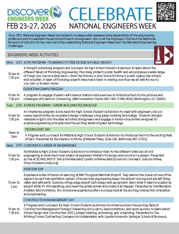 • Construction Management Day (in partnership with Whiting-Turner and in collaboration with Loyola University’s Sellinger School of Business)