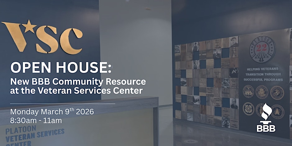As part of this partnership, BBB will be on-site at the Veteran Services Center on the second and fourth Mondays of each month, offering: